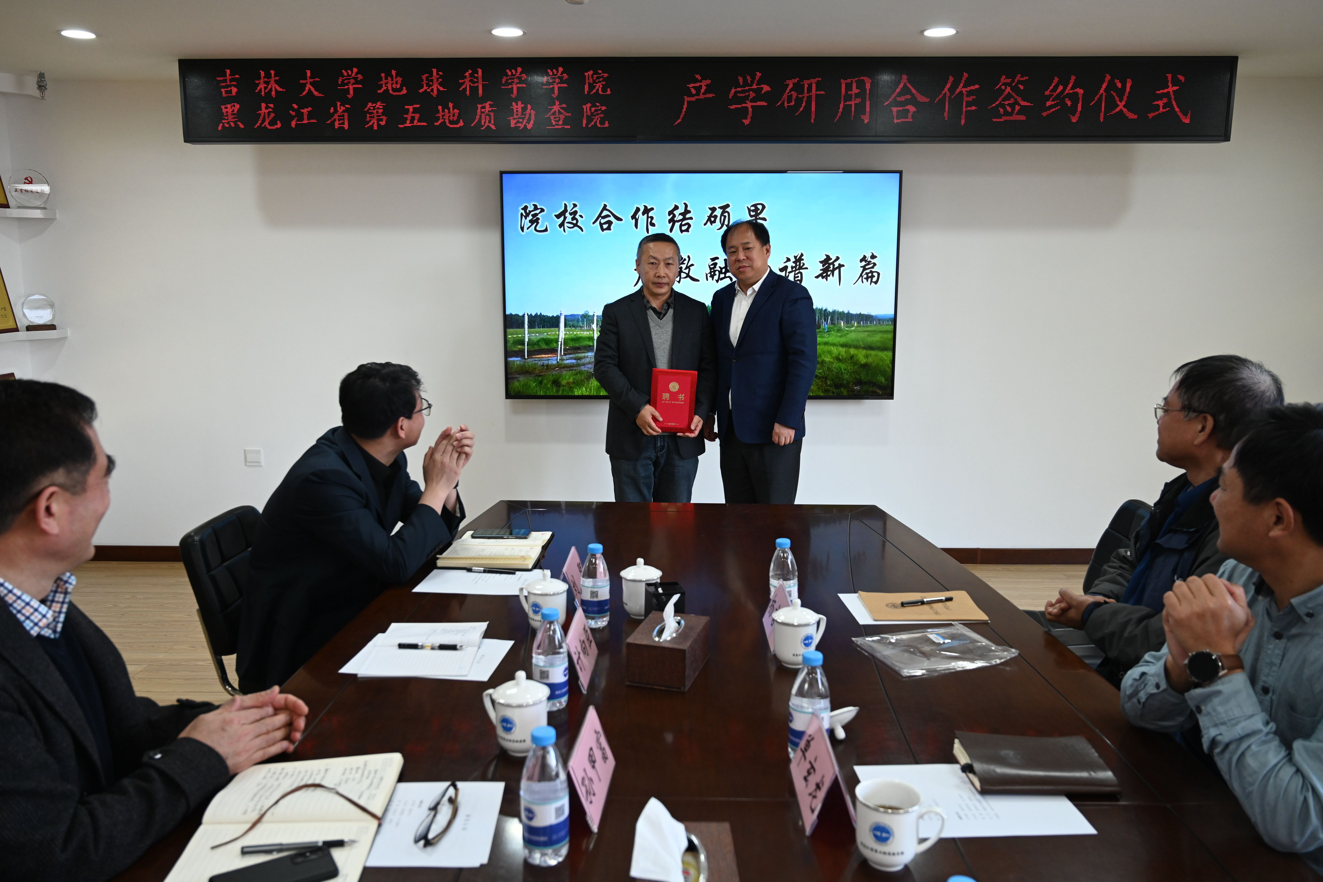为促进校企间产学研合作,提升地质人才培养质量,加速科研成果转化,10月28日,永利集团304am登录与黑龙江省第五地质勘查院举行了产学研用合作签约暨基地揭牌仪式,仪式在黑龙江省第五地质勘查院办公楼举行。学院院长单玄龙、党委书记杨洲、资源工程系主任杨言辰,黑龙江省第五地质勘查院党委书记孙甲富、总工程师计向臣、副院长雷敏及相关工作人员等8人参加了签约仪式。